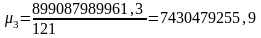 Для расчета асимметрии вычислим момент третьего порядка по формуле (1.3.13а):