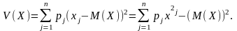 V(X) = M(X – M(X))2 = M(X2) – (M(X))2.