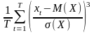 У випадку, коли в наявності є статистична інформація щодо показника ефективності Х, зібрана протягом T періодів, коефіцієнт асиметрії обчислюють за формулою: