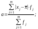 Среднее линейное отклонение рассчитывается как средняя арифметическая из модулей отклонений вариант от средней. Т.к. данные сгруппированы, то рассчитывается среднее линейное отклонение взвешенное: