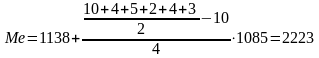 ). Медианным интервалом является вторая группа, т. к. ее накопленная частота равна 14. Теперь рассчитаем медиану:
