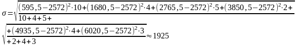 Среднее квадратическое отклонение рассчитывается как корень из средней арифметической квадратов отклонений от средней. По сгруппированным данным рассчитывается среднее квадратическое отклонение взвешенное: