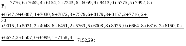 В каждой группе рассчитаем среднее значение результативного признака как простую среднюю арифметическую из значений результативного признака у всех единиц совокупности, входящих в данную группу. Она рассчитывается по формуле: