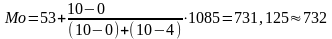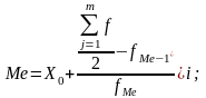где X0 – нижняя граница медианного интервала; fMe-1/ – накопленная частота предмедианного интервала; fMe – частота медианного интервала; i – величина медианного интервала.