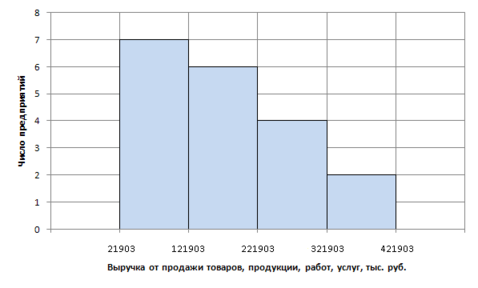 Из таблицы 1.2 видно, что большинство предприятий имеет выручку не более 221903 тыс. руб.
