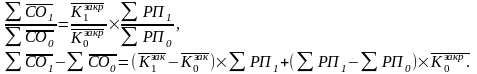 СОвысв.= (К1-К0)* РП1, где