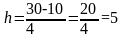 Определение величины интервала по формуле (1) при заданных k = 4, xmax =30, xmin =10;
