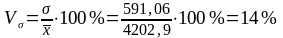 Вариация (среднеквадратическое отклонение) значений признака внутри каждой группы незначительна и составляет: