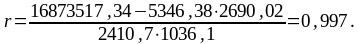 Коэффициент линейной корреляции, равный 0,997, свидетельствует о наличии очень сильной связи.