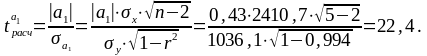 Для того, чтобы оценить на сколько параметры а1, а0 отображают исследуемый процесс и не являются ли эти значения результатом случайных величин, рассчитаем средние ошибки и t-критерии Стьюдента.