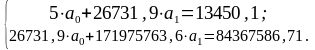 Система нормальных уравнений для нахождения параметров a0, a1 имеет вид: