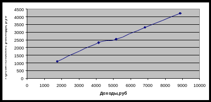 Рисунок 4 - Зависимость потребительских расходов от доходов