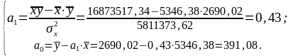 Решением системы являются значения параметров: а0 = 391,08; a1 = 0,43.