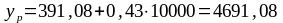 Вычислим прогнозное значение потребительских расходов для величины дохода хр=10000. При уровне значимости α=0,05 точечное значение прогноза