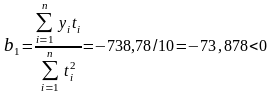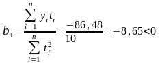 Для данного уравнения b0 – показатель среднего уровня динамического ряда, т.к. вычислительная формула этого параметра совпадает с формулой простой арифметической. b1 – линейный коэффициент регрессии, показывающий направление тренда, в данном случае b1