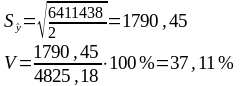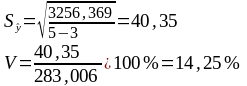 , значит, связь между признаками V и Y - умеренная, но с учётом погрешностей можно сказать даже слабая. Таким образом, вариация результативного признака у