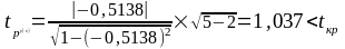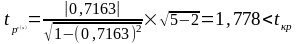 критическое значение коэффициента Стьюдента tкр=3,182.