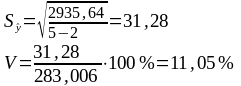 Данная разность доказывает правильность применения линейного уравнения корреляционной зависимости для связи Х и V.