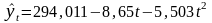 Таким образом, b0 = 294,011, b1 = - 8,65, b2 = -5,503