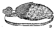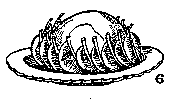 Рисунок N9 изображает ветчину в день Пасхи. Кожа ее может быть дальше или ближе к краям, вырезана фестонами, жир украшен гвоздиками, натыканными наискось, только вдоль или в клетку. Кость украшена кокардой из вырезанной бумаги.