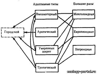 Адаптивные типы, проявляясь в пределах вида Homo sapiens, не представляют собой экологически специализированных форм, они выражаются в виде тенденции к изменению физиологических и морфологических черт в направлении, наиболее благоприятном для существования в определенной среде и не препятствующем возможности существования в других экологических нишах.