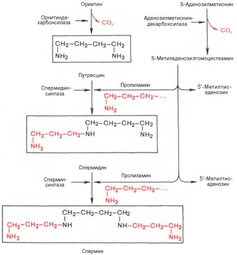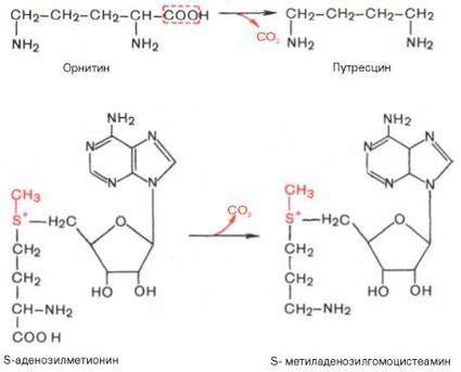 Значение этих реакций для тканей животных огромно, поскольку продукты реакций используются для синтеза полиаминов – спермидина и спермина.
