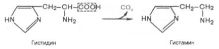 В животных тканях с высокой скоростью протекает декарбоксилиро-вание гистидина под действием специфической декарбоксилазы.