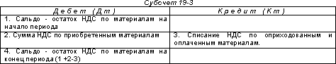 Для учета налога на добавленную стоимость, приходящегося на производственные запасы применяется субсчет 19-3 «Налог на добавленную стоимость по приобретенным материально-производственным запасам»: