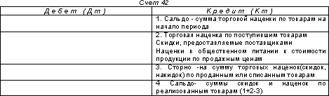 Счет 42 «Торговая наценка» предназначен для обобщения информации о торговых наценках (скидках, накидках) на товары в предприятиях розничной торговли, если их учет ведется по продажным ценам.