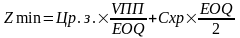 Модель ЕОQ позволяет оптимизировать пропорции между 2 группами затрат таким образом, чтобы общая сумма затрат была минимальной