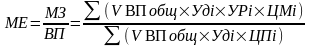 В итоге общая материалоемкость (МЕ) зависит от объема произведенной продукции (VВП), ее структуры (УРi). расхода материалов на единицу продукции (Удi), цен на материальные ресурсы (ЦМi) и отпускных цен на продукцию.