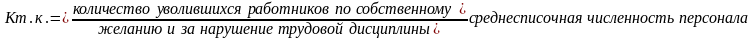 3. коэффициент текучести кадров (характеризует уровень увольнения работников по отрицательным причинам)