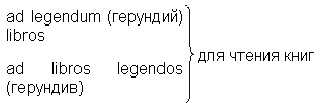 Accusat+vus герундия употребляется с предлогом ad (иногда с предлогом ob) в значении цели действия: ad legendum для чтения.