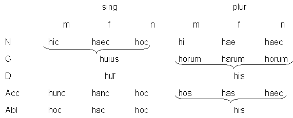 Hic, haec, hoc этот указывает на ближайший предмет или лицо и означает "тот, который у меня", "тот, о котором я говорю".