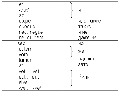 1. Союзы -que и - ve -ve присоединяются ко второму из соединяемых слов в качестве суффикса: dei deaeque боги и богини.