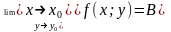 Число В називається границею ф-ії z=f(x;y) при хx0, yy0, якщо для будь-якого >0 існує число >0 таке, що при виконанні нерівності 0<(x-x0)2+(y-y0)2<2 виконується нерівність |f(x;y)-B|< і позначається: