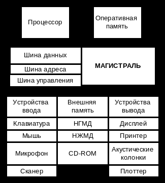 В основу архитектуры современных персональных компьютеров положен магистрально-модульный принцип. Модульный принцип позволяет потребителю самому комплектовать нужную ему конфигурацию компьютера и производить при необходимости ее модернизацию. Модульная организация компьютера опирается на магистральный (шинный) принцип обмена информацией между модулями.