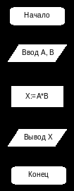 Рассмотрим на простейшем примере (умножение двух чисел) процесс построения алгоритма, его кодирование на языке программирования и выполнение программы. В качестве языка программирования выбран Бейсик, однако это может быть практически любой язык программирования.