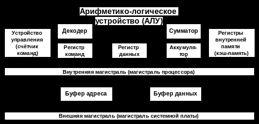 Основным устройством процессора является арифметико-логическое устройство (АЛУ). Именно это устройство выполняет все операции над данными. Таким образом, это устройство должно иметь специальные регистры (команд и данных) для временного хранения поступивших из оперативной памяти команд и данных.