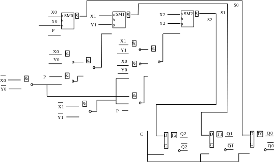 Одноразрядный сумматор рис.1 имеет три входа (два слагаемых и перенос из предыдущего разряда) и два выхода (суммы и переноса в следующий разряд).