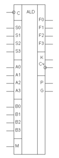 Вид операции, выполняемый этой микросхемой над данными, задаётся 5-ти разрядным кодом на входах M и S3S2S1S0.