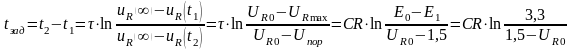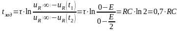 По мере заряда конденсатора напряжение на R стремится к исходному уровню UR0.Пока это напряжение остается большим Uпор, на выходе ЛЭ1 будет логический нуль. Задержка положительного фронта равна