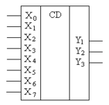 Шифраторы(рисБ) выполняют задачу обратную той, которую выполняют дешифраторы: появление логической единицы (логического нуля) на определенном входе приводит к появлению соответствующей кодовой комбинации на выходе. Также как и дешифраторы, шифраторы бывают полными и неполными. Работа восьмивходового полного шифратора задается следующей таблицей истинности: