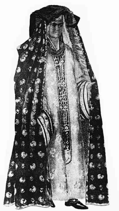 Старинный выходной костюм молодой женщины из Бухары. Так одевались городские таджички.