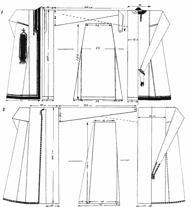 ИЛЛ.2 - Технические рисунки паранджей, изображенных на Илл.1. Альбом одежды таджиков. Душанбе. 1969.