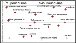 | Высокая вовлечённостьт | Необходим большой объем информации для принятия решения, т.к. продукт имеет большое значение для потребителя. К этой категории относятся многие крупные покупки (автомобили, недвижимость, крупная бытовая техника), а также практически все продукты, при покупке которых необходима информация: для чего они нужны. | Продукт важен, но содержательная информация не так важна как ощущения, чувства, испытываемые к продукту. Это поведение характеризуется внутренними побудительными мотивами, в первую очередь – самоуважением, чувством собственного достоинства, самолюбием. Рекламная стратегия опирается на установление внутренней связи в продуктом и желание обладать им. |