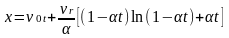или, выполняя интегрирование после разделения переменных и считая х=0 при t=0, получаем
