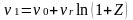 Выполняя интегрирование в (16) при линейном законе изменения массы (17), получаем следующее уравнение движения: