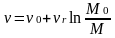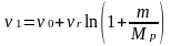 Если в формулу (14) подставить значения величин, характеризующих конец горения, когда масса точки (ракеты) состоит только из массы несгоревшей части (массы приборов и корпуса ракеты)