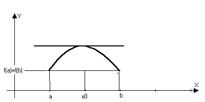 Пусть функция y=f(x) непрерывна на отрезке [a,b] и дифференцируема на (a,b). Кроме того на концах интервала она принемает равные значения f(a)=f(b), тогда с(a,b): f(c)=0